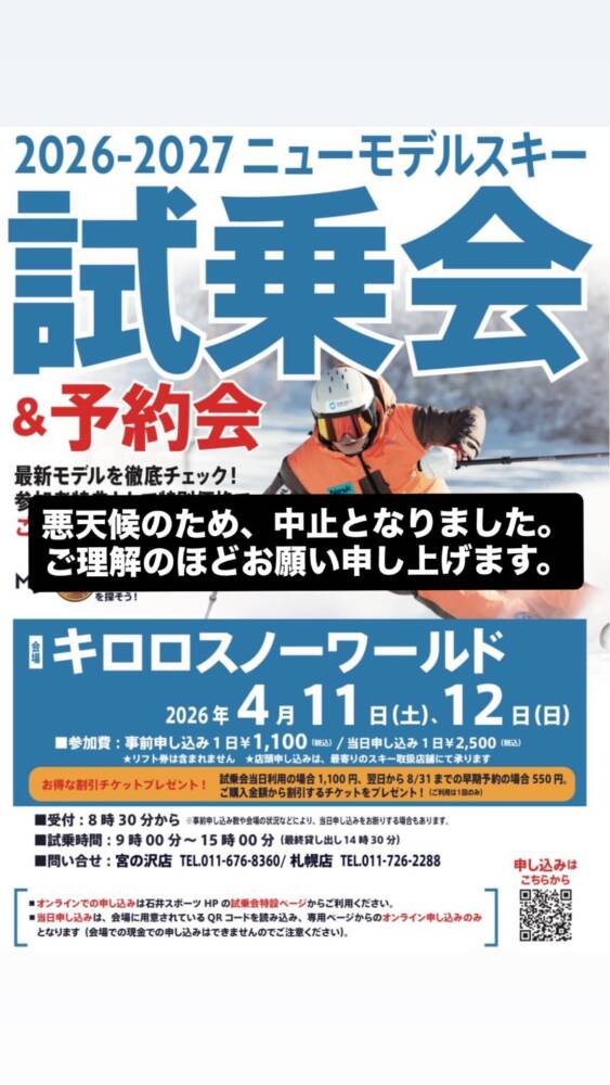 こんにちは‼️ 2026-2027SKI NEW MODEL試乗会カムイ日程、ご…
