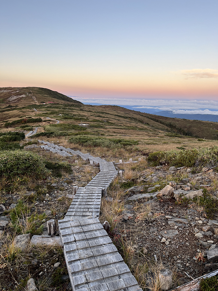 テント場から太郎平小屋に向かう木道もツルツル‥?⚠️