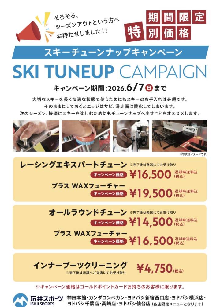 【期間限定】スキーチューンナップ 特別価格キャンペーン