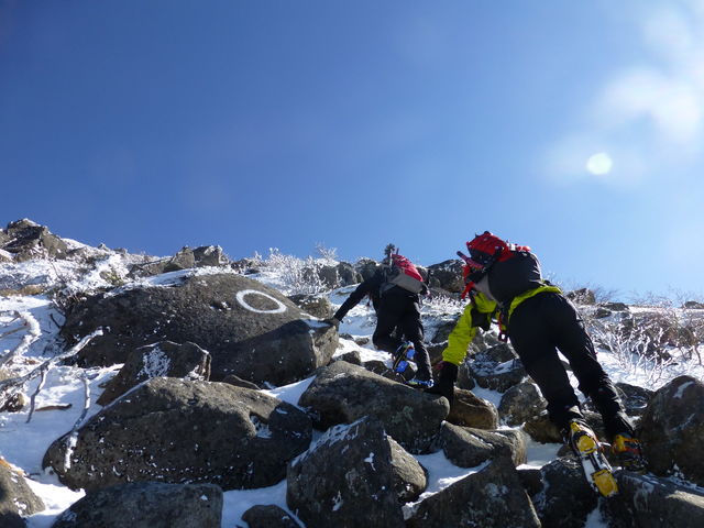 岩場といっても半分以上よ~くしまった雪に埋まってとっても歩きやすいです。