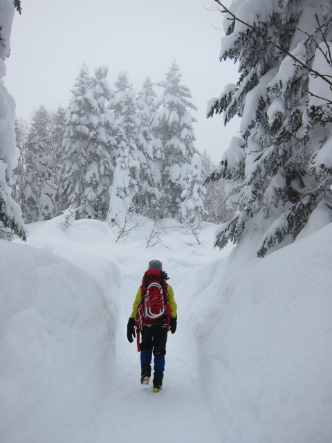 深い雪の登山道を登って行きます