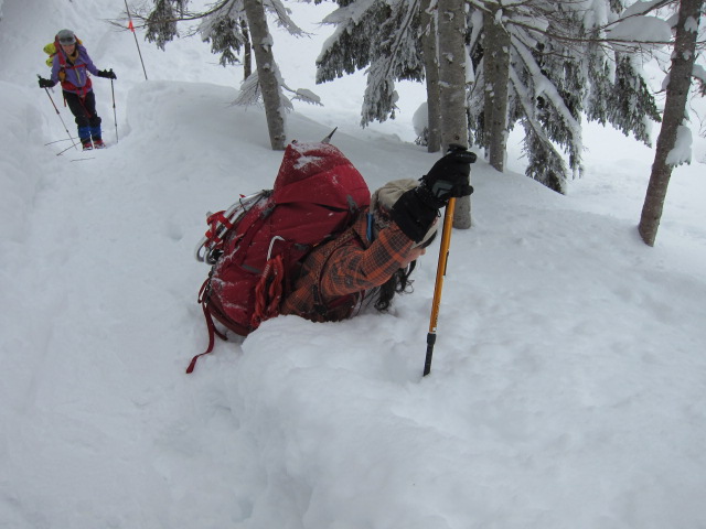 うっかり登山道をはずれると つぼあしだと胸まで潜ります