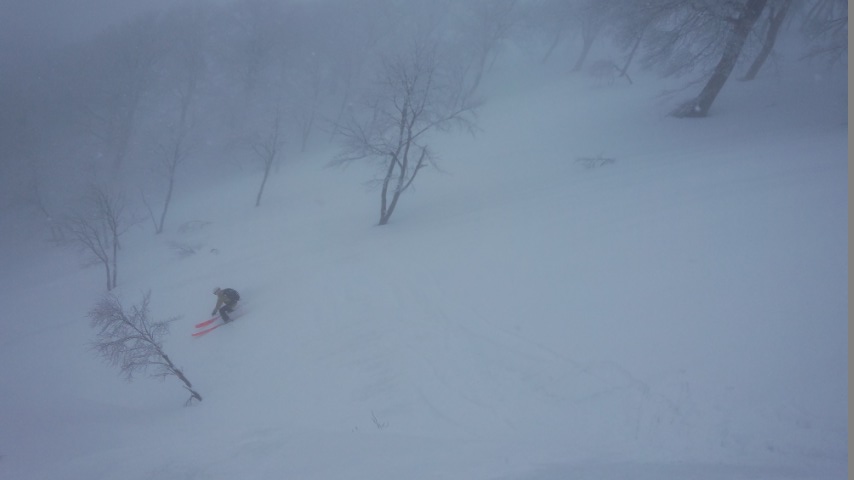 捉えにくい柔らかな雪でそれほどスピードを出さなくても