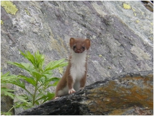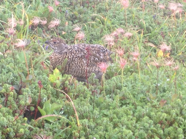途中、なーんと、熊を見てしまいました!!ちょうど同じ写真の右側の日が当って明るい斜面を