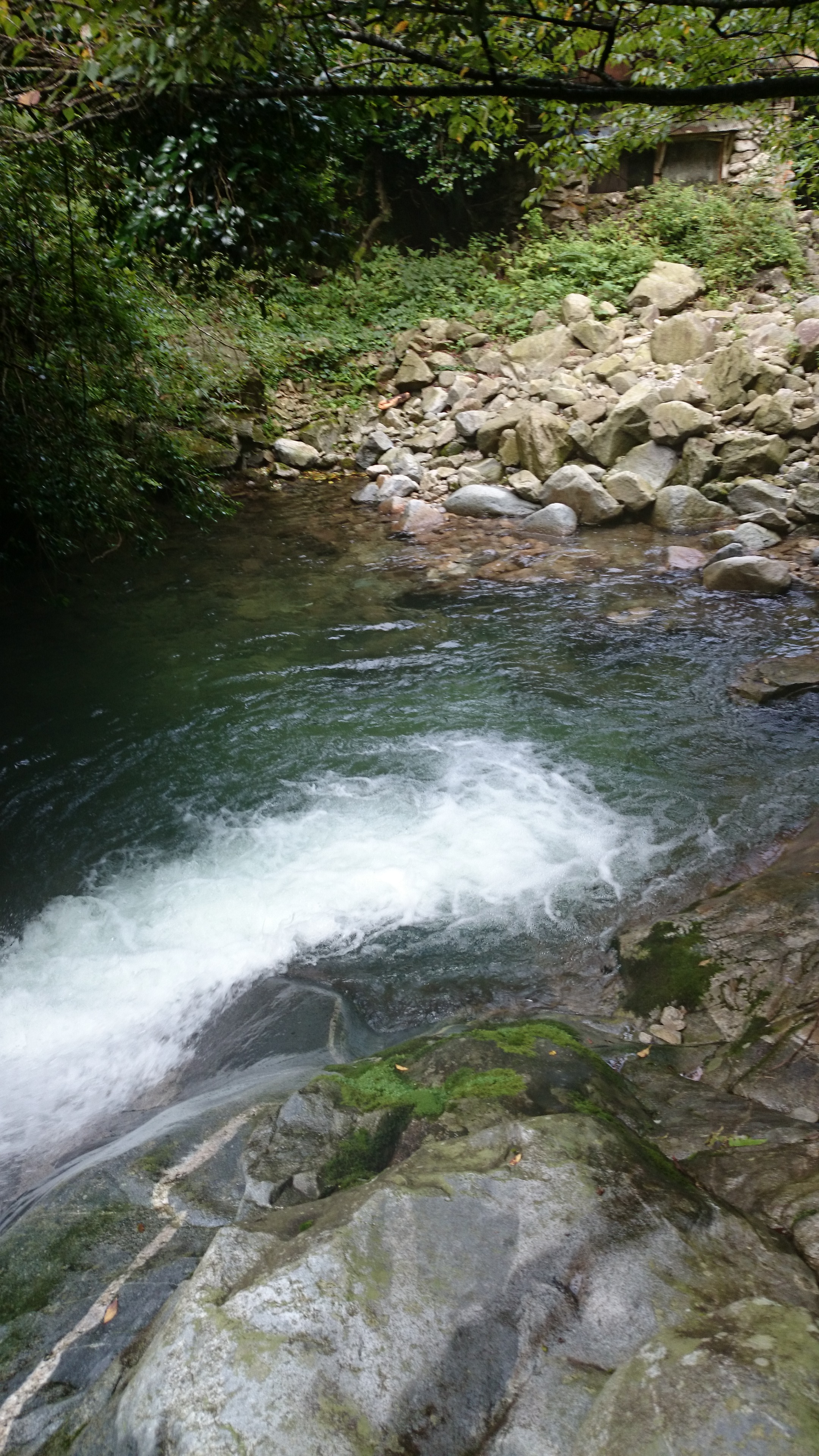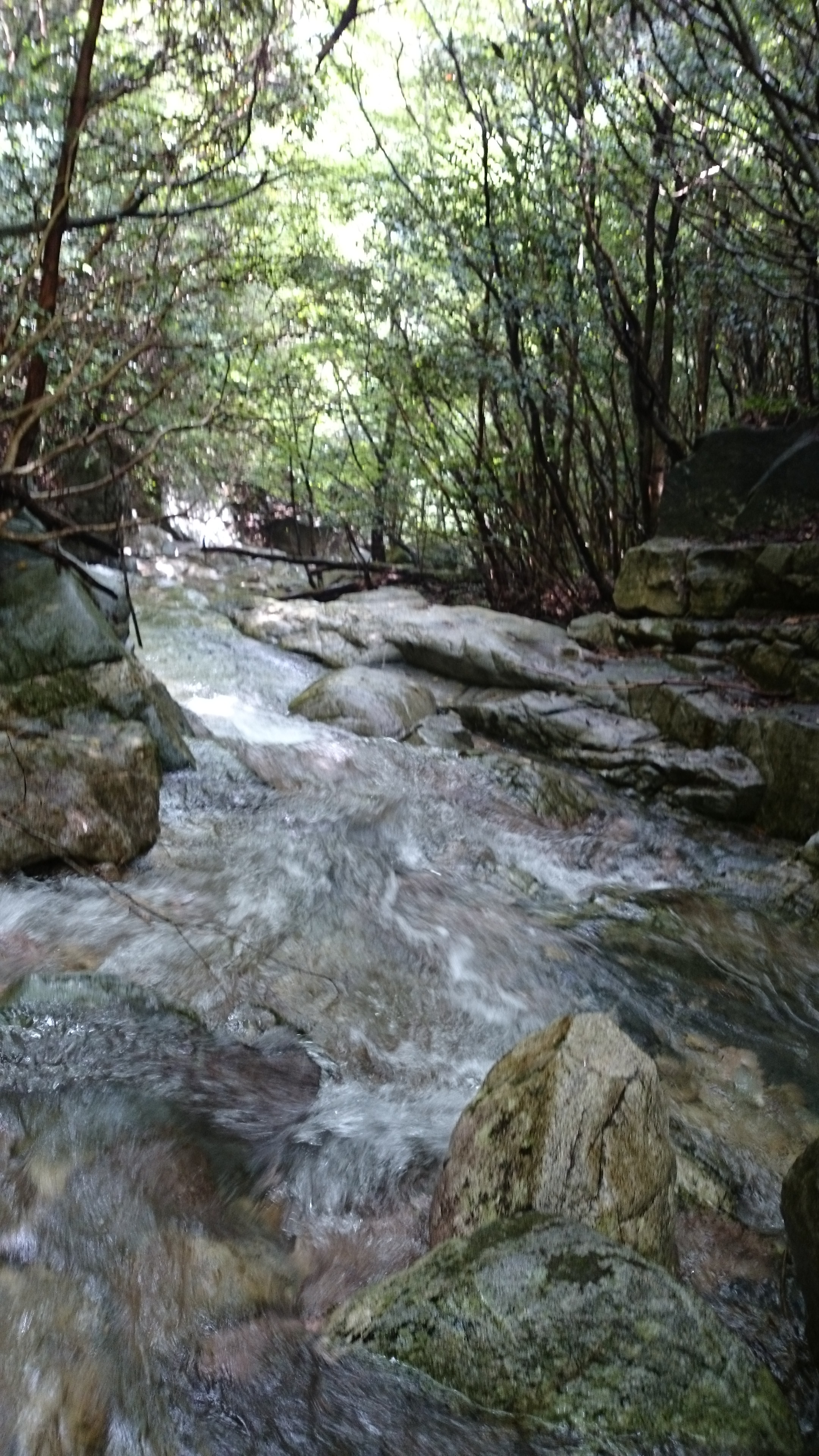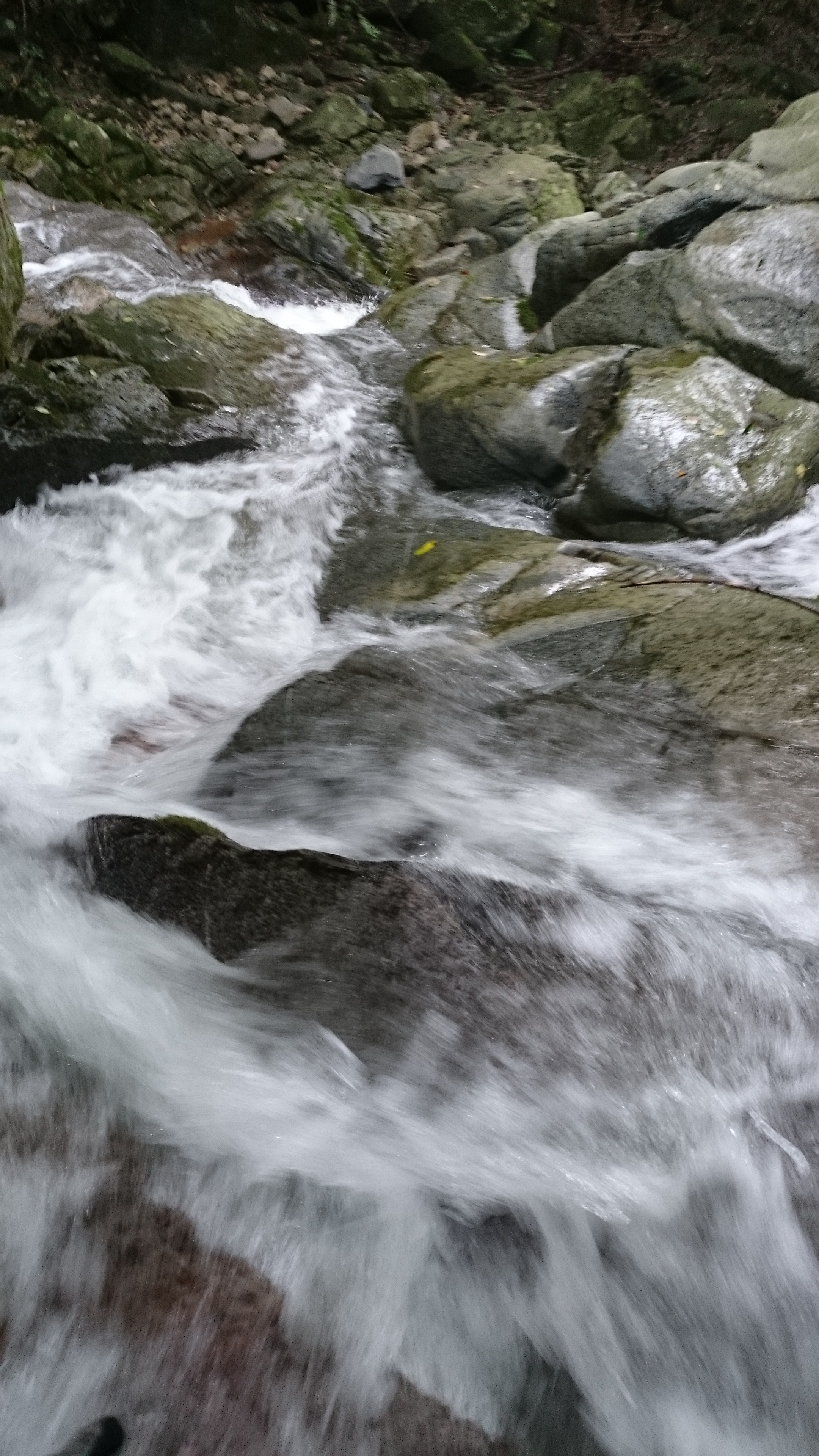 まずは沢沿いを下る道を歩きます。