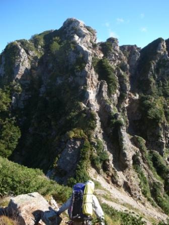 乗越に向かって登ります。