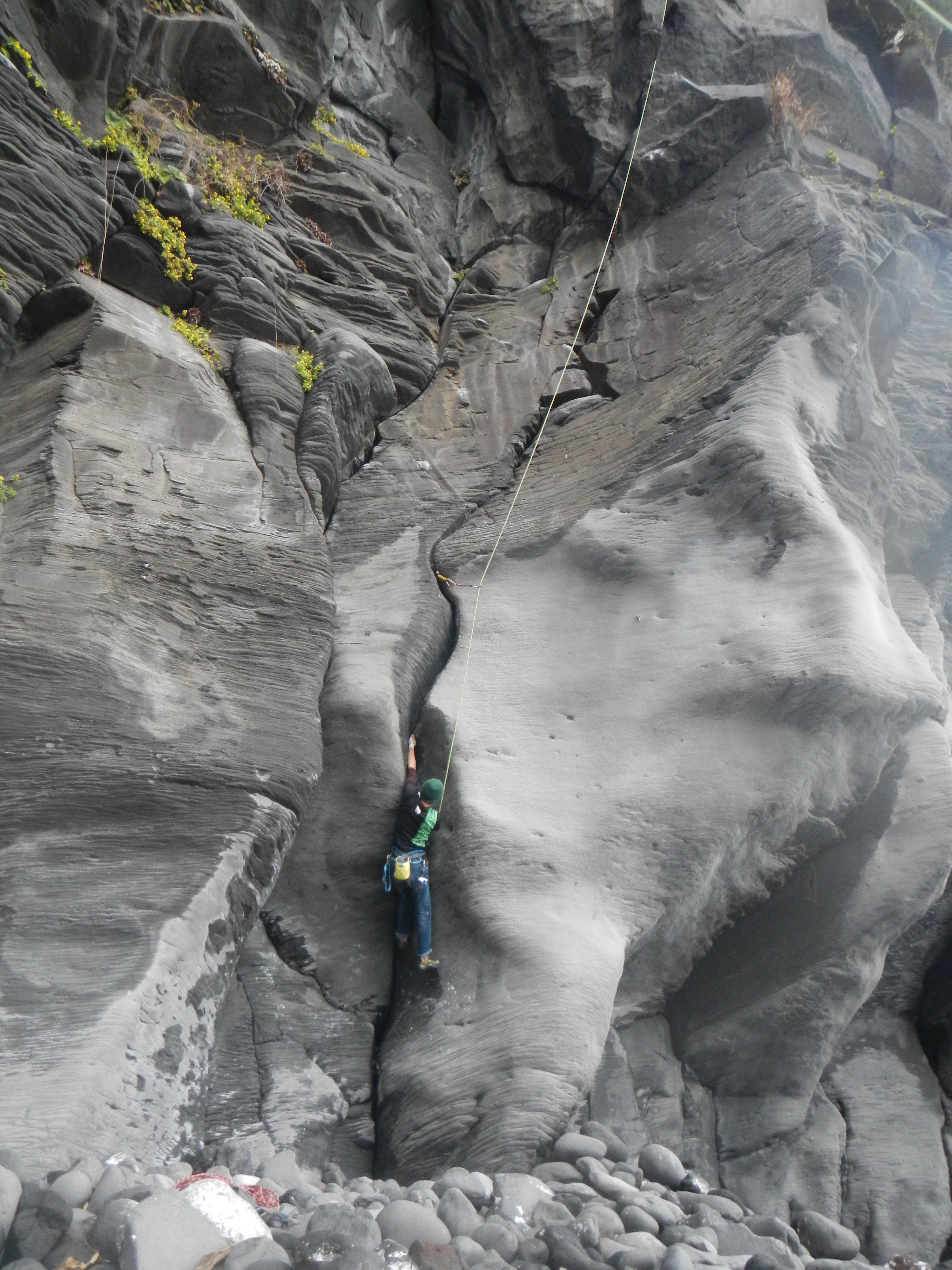 「SOLARIUM」クラシックな名課題。途中の3つ穴ポケットで手を入れ替えて2本指の悪いエッジを中継しリップのガバにとばす真っ向勝負課題でした。(リーチのある外人は中継せずにいっきにガバをとっていた・・・・。)