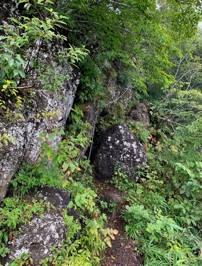 一不動避難小屋から戸隠キャンプ場までの下りも長いです。帯岩のクサリ場もあり慎重に下らないといけません。