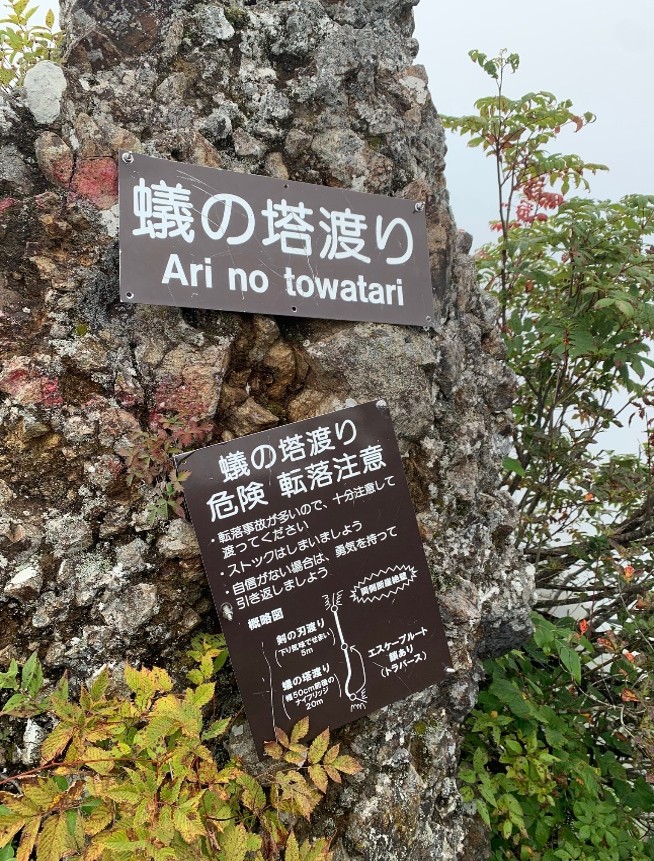 登山初めから登りが急です。クサリ場が多いので体力を使います。蟻の塔渡りまで距離が長いので