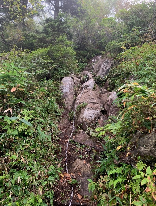 天気:曇りのち雨 天気予報ではお昼ごろに雨の予報。上部のクサリ場で雨が降らなければと思いながら8時に出発