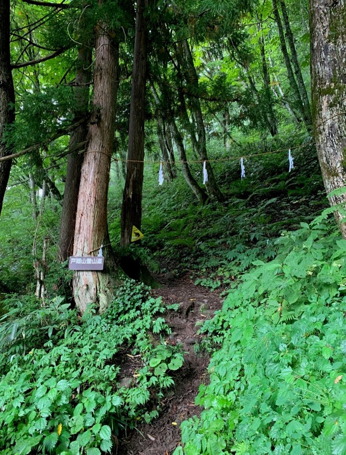 9:04 奥社の脇から登山道へ 始まりから急坂です