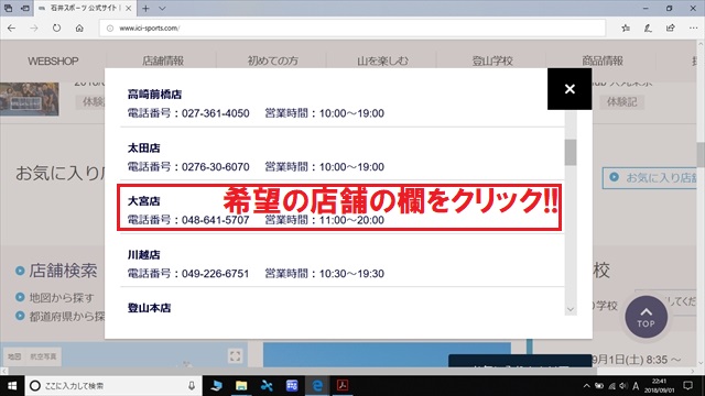 ②別ウィンドウが画面中央に表示されるので、登録したい店舗までスクロール。