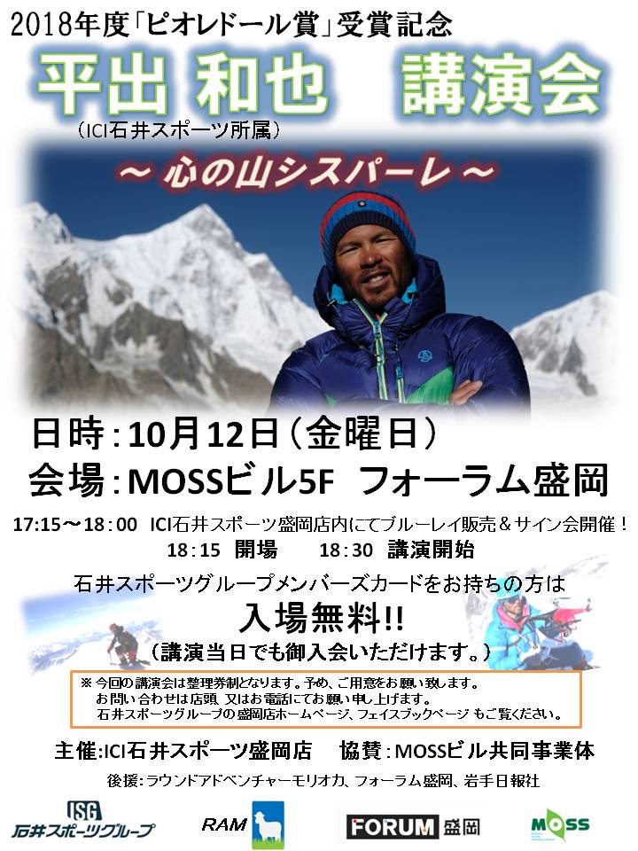 ICI石井スポーツ所属のプロクライマー「平出 和也(ひらいでかずや)」がパキスタンの未踏峰「シスパーレ(7611m)」の初登攀の功績が認められ、自身2度目となるピオレドール賞を受賞致しました。