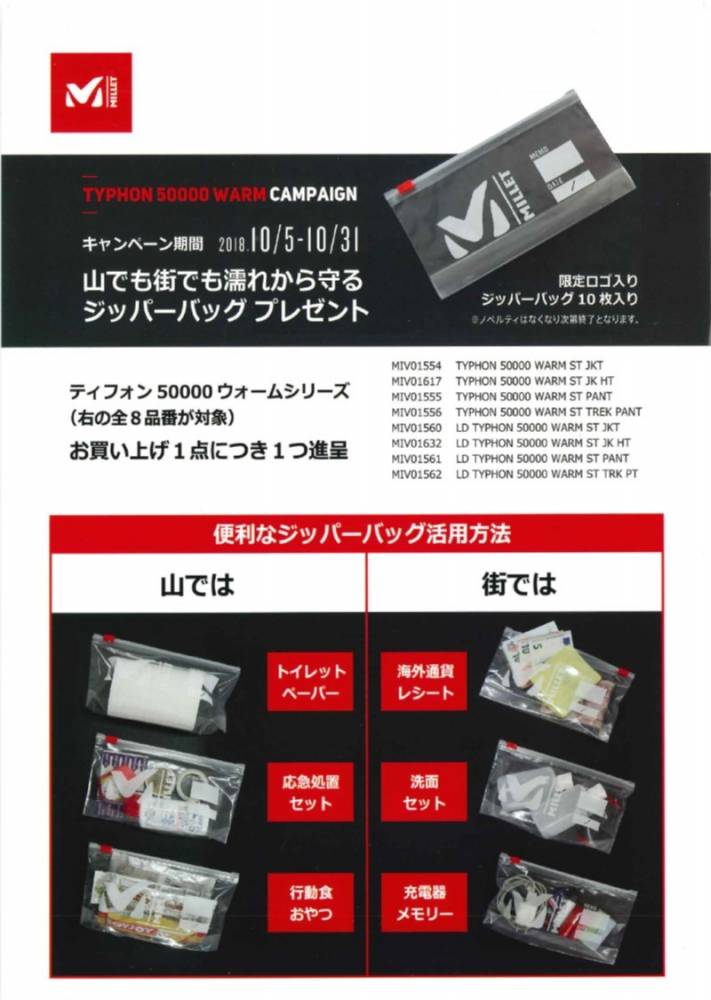期間中「ティフォンウォーム 50000 シリーズ」をご購入の方に、「ミレーオリジナル ジッパーバッグ」をプレゼント!!