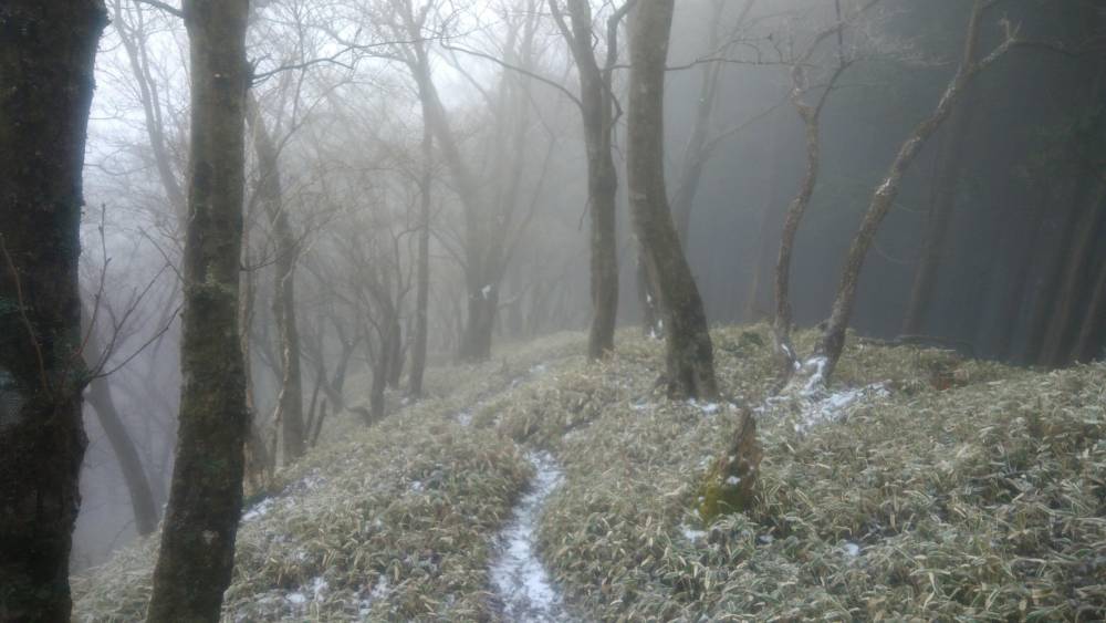 午後から標高1000m近くの稜線から雪が降ってきました。