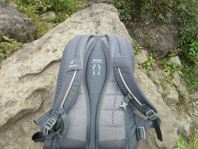 雨具、防寒着、折りたたみストック2本、水筒+ランチも入ってしまうので、最近の日帰りハイキングはほぼこれです。