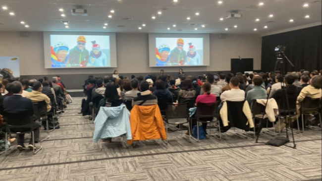 会場ではMCの三原勇希さん、ゲストにエベレスト等海外高所登山でおなじみの国際山岳ガイド 近藤謙司さん、登山ユーチューバー かほさん の3人のトークでとても盛り上がっていました?