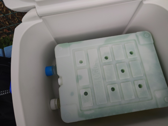 今回はコールマンのクーラーボックス+ロゴスの保冷剤×2を使用しました。