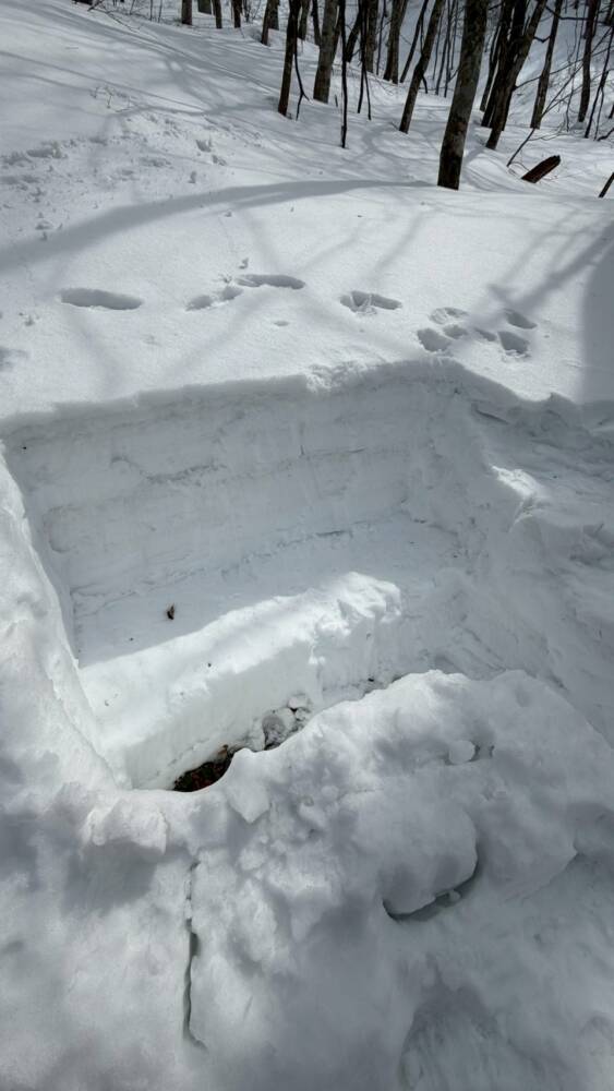 最初はゲレンデの激登りからスタート。まだまだ雪はたっぷりありました。