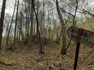 一定区間で看板が設置されていますが、暗い時間や霧の中では見逃してしまうことがある上に、人があまり通るルートではないので、人が通った跡も明確ではありません。