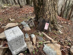 目立つような目印ではないので、霧などで天候が悪い場合は見逃してしまう場合があります。道迷いも起きやすいので、登山アプリのほかに周辺の地形図があると安心です。
