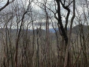榊山山頂からの眺望はほとんどありません。このように、木々が周囲を覆っており、その隙間からわずかに展望があるだけです。