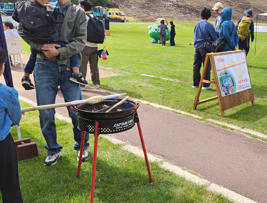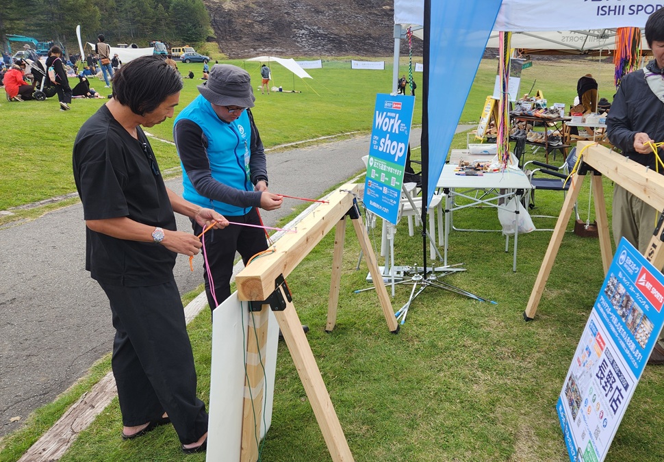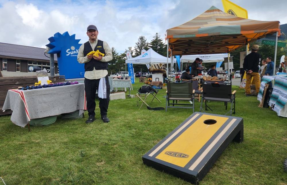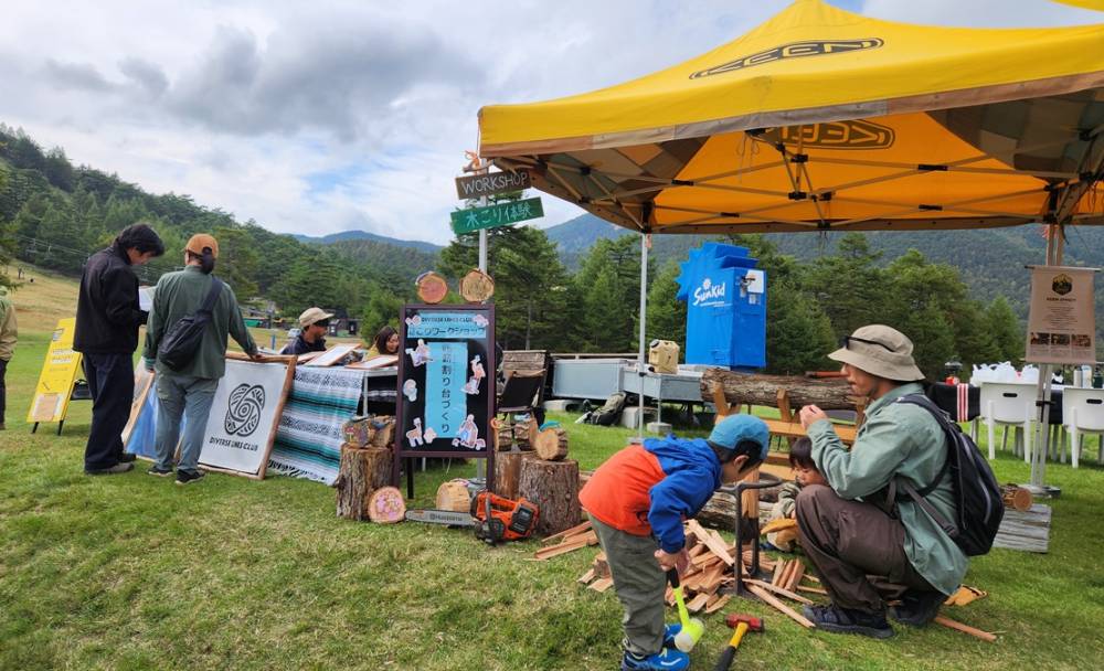 長野県の今が旬の果物等の販売や、ソーキそば、焼き芋やハンバーガー等の味覚も楽しめ、フリーマーケットや小諸のストックメーカーのキザキさんのお得な販売もありました。体験コーナーもバームクーヘンづくりや、クラフト、ツリークライミング体験もありアットホームな雰囲気で、ご来場された方々は皆のびのび過ごしていました。