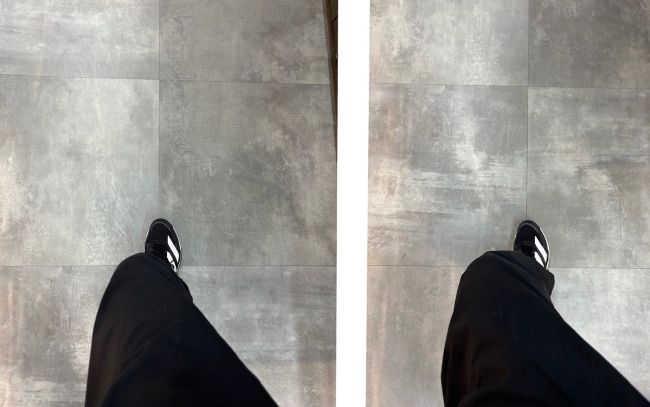 インソールを入れて簡単なテストをしてみました。結果は下の写真の通りです。インソールを入れる事で膝が内側に入らなくなります。