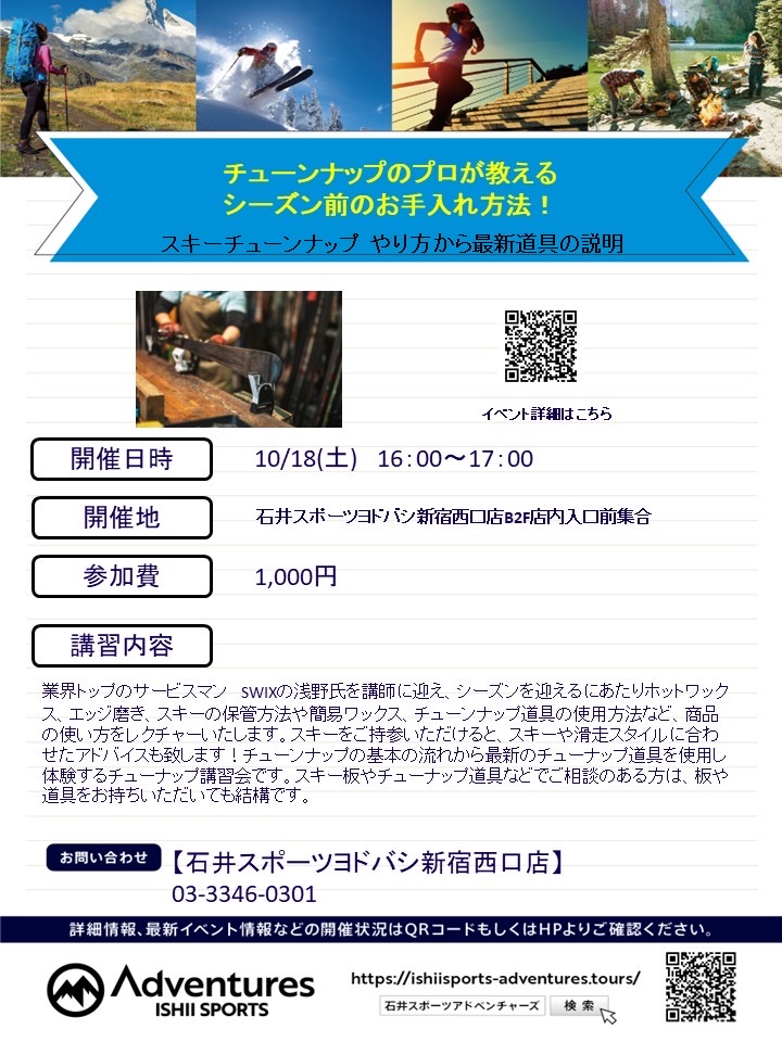 10/18(土)新宿西口店にて、スキーのセルフチューンナップ講習会を開催いたします!