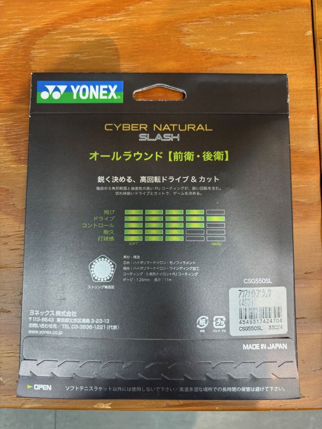 今回はヨネックスの軟式テニス用ストリング「サイバーナチュラル スラッシュ」をご紹介します。
