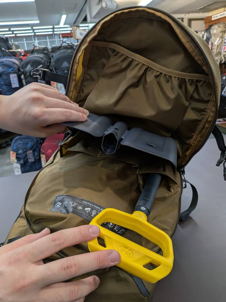 ショベルのシャフトやプローブを収納するスリットも付いています。