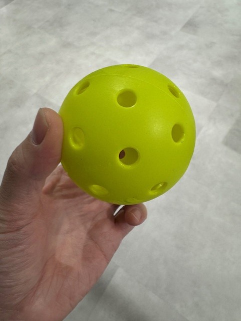 上の写真が実際のボールで、軽量かつプラスチック製の球の為、小さい子や年配が当たっても比較的安全。