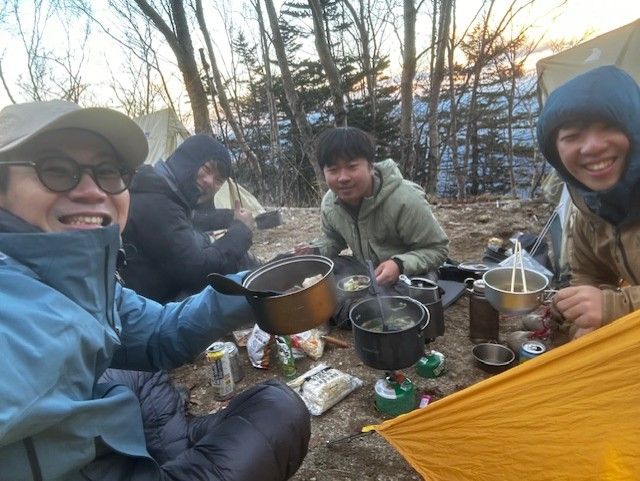 気温もー5度とそろそろ雪が降り始めるような気温の中でしたので冷えた体にみんなで鍋を囲むことで心も体もあったまり、よく眠れそうです!