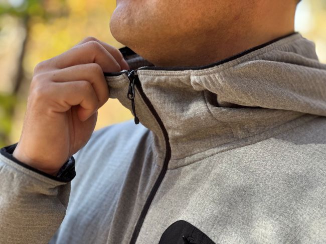 厚手フリースよりも嵩張らず、ウールとポリエステルのハイブリッド構成にすることで、