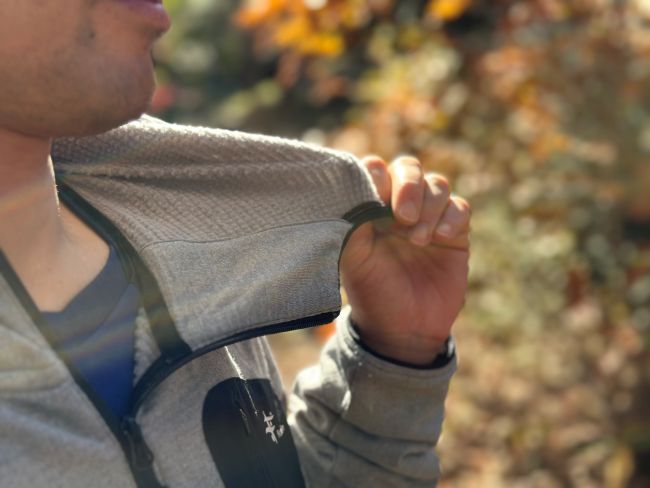 風の侵入も防いでくれるので、襟首の高さがあるものは重宝しますね。