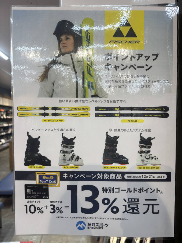 こんにちは!スキーコーナーより特別ポイント還元のご案内です。