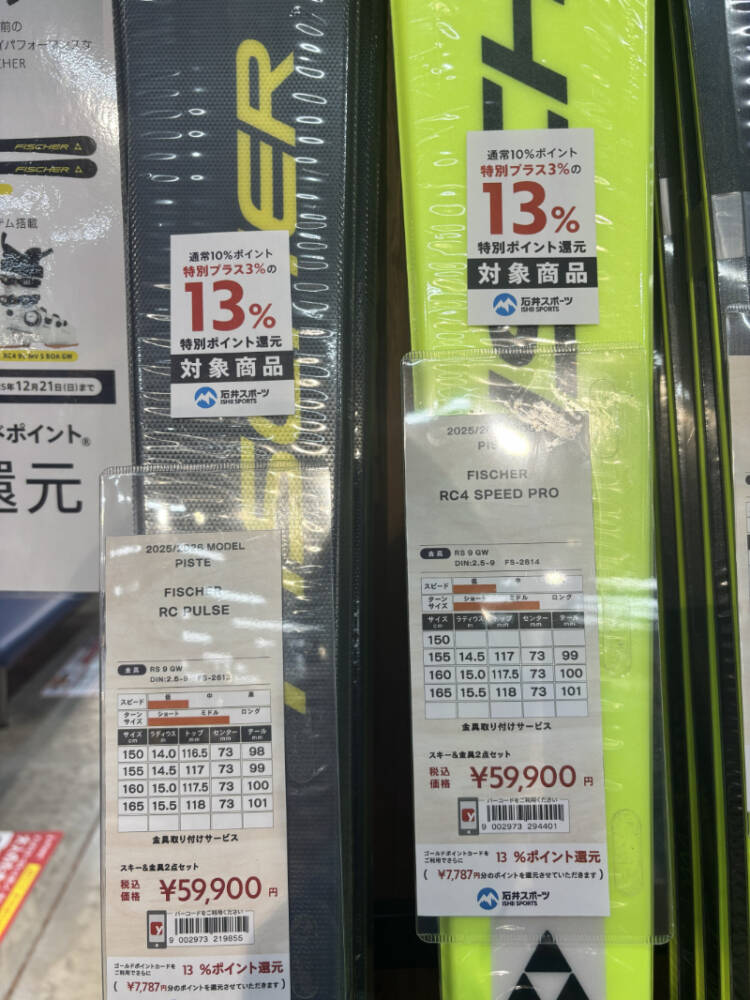 お値段もお値打ちでポイントも付く!レンタルではなく、自分のスキーが欲しい、、と悩まれている方にもおススメです。