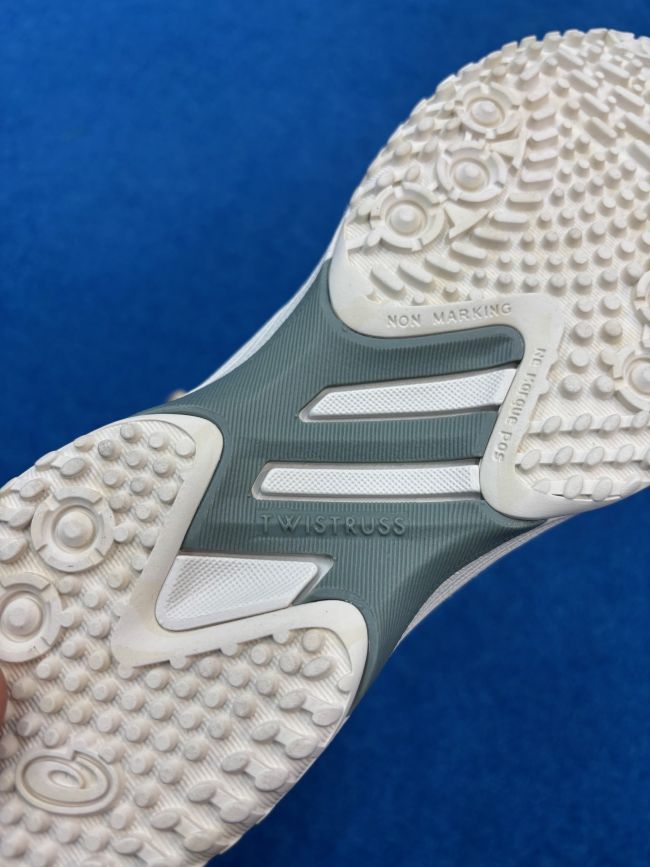 TWISTRUSSテクノロジーも採用されています。TWISTRUSSはシューズ裏中部に搭載されている樹脂製の補強具です。通常であれば人間の足は着地した時に曲がったり、ねじれたりするのでエネルギーロスが発生しますが、TWISTRUSSが搭載されているシューズであれば足の「曲がり」と「ねじれ」をコントロールしてくれるのでエネルギーロスを最小限に抑えてくれます。