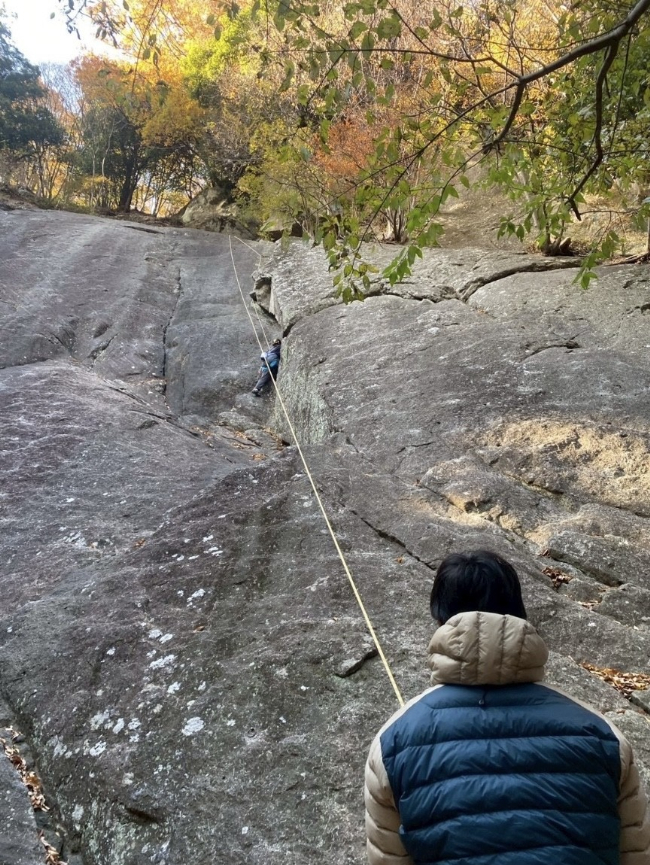 気温も12月にしては暖かく、紅葉がきれいでとても良いクライミング日和でした。
