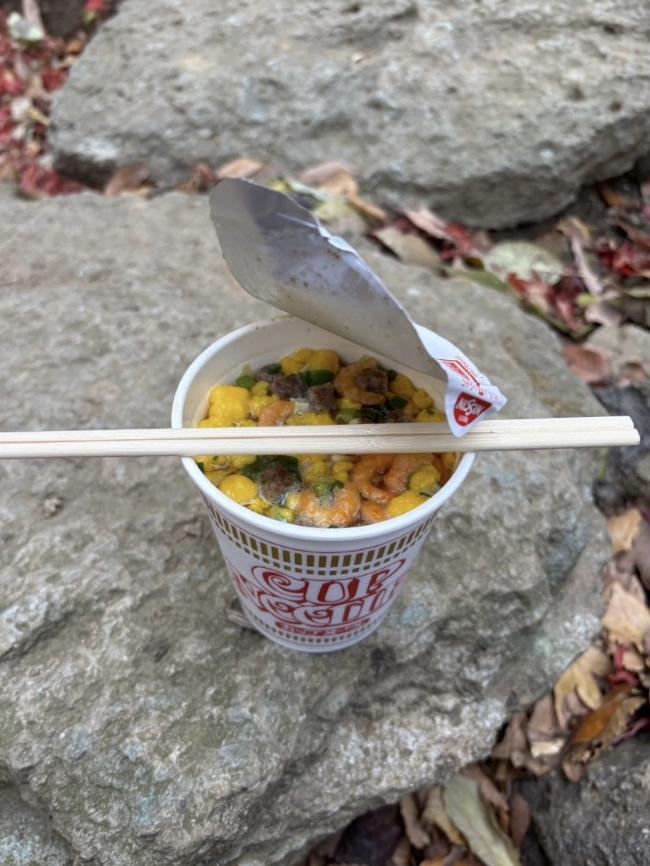 秋冬に野外で食べるカップ麺は格別なので、皆さんも是非クッカーとガス缶などを持って、ハイキングやクライミングに挑戦してみてください♪