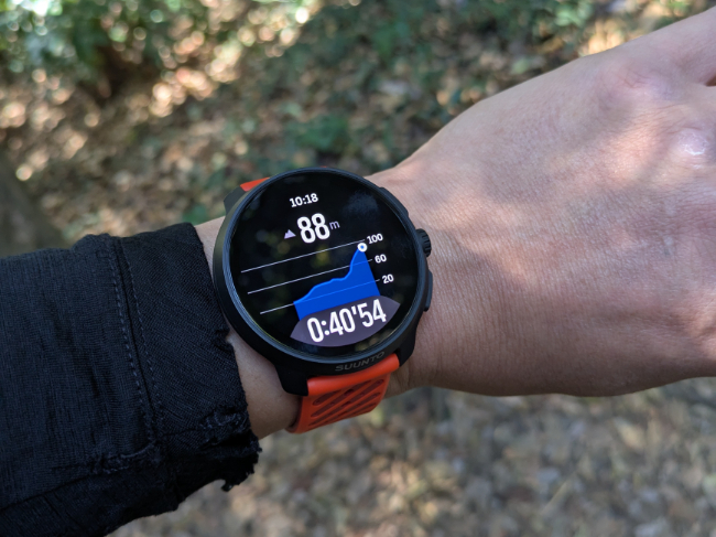 現在の確認などは、画面が大きいスマホでヤマップなどの地図アプリが圧倒的に見やすいですが、簡単な位置の確認、標高・方位の確認などは腕時計が便利です。
