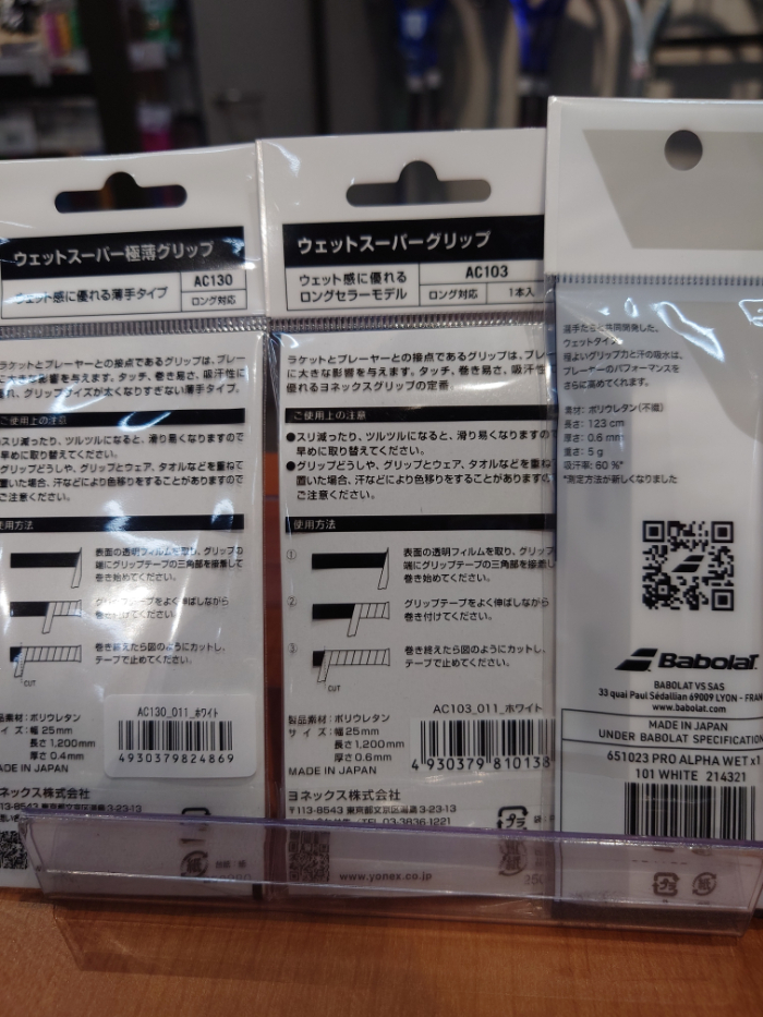 元グリップの上から巻き付ける製品です。特に空気が乾燥するこの時期には手のひらに吸い付くような感触のウェットタイプがおススメですが、製品によって厚みが違う事はご存じでしょうか?