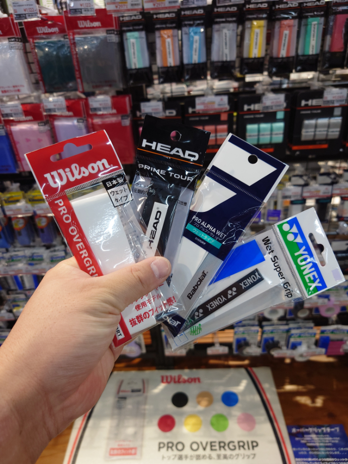 WilsonやHEAD、YONEXやbabolatなどで商品数が多いのがこの厚みです。