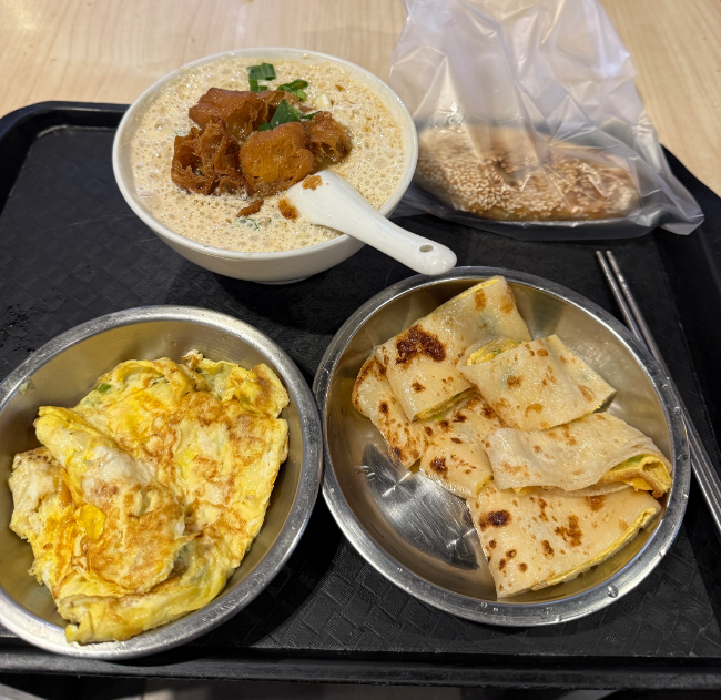 電車で台北に行きフーハンドゥジャンと言う行列のできる朝ごはん屋さんへ