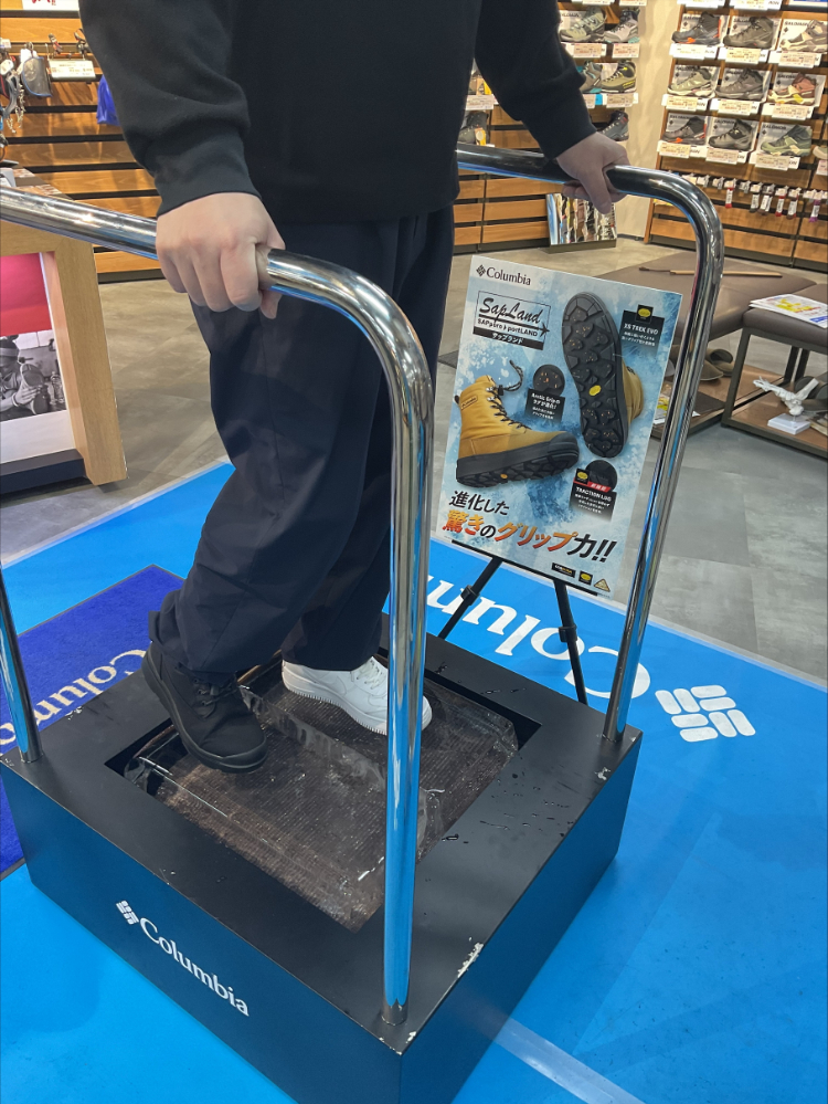 実際に体験していただくと、濡れた氷上での安定したグリップに、驚かれている方が多かったです!