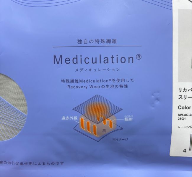 シックスパッドのリカバリーウェアに使用されている繊維は「Mediculation」という天然鉱石を原料とした高純度セラミックが練り込まれている特殊な繊維です。Mediculationは体から放出される遠赤外線を輻射し、体に返してくれます。これにより、血行が促進され疲労回復や筋肉のコリの解消を手助けしてくれます。