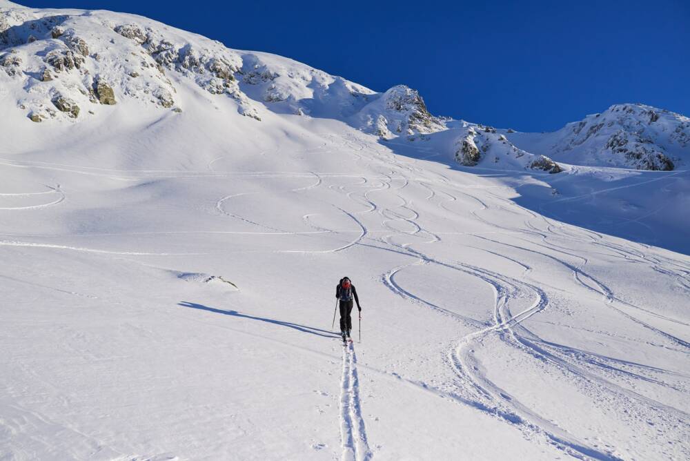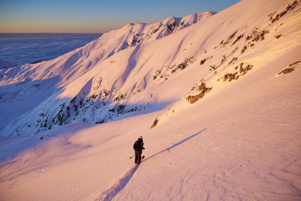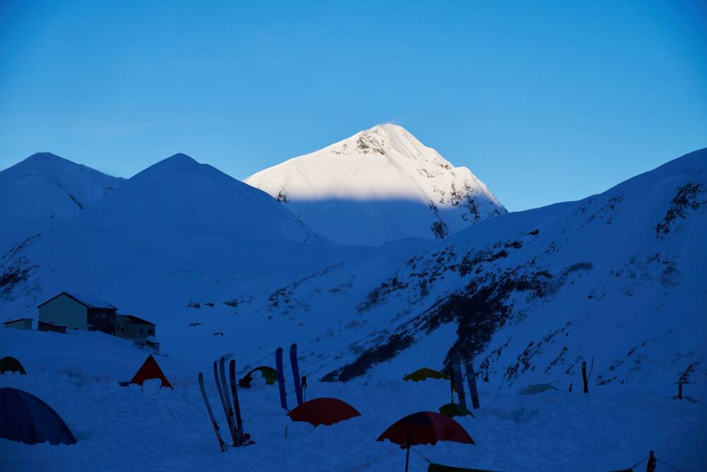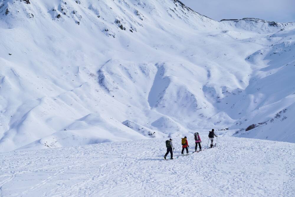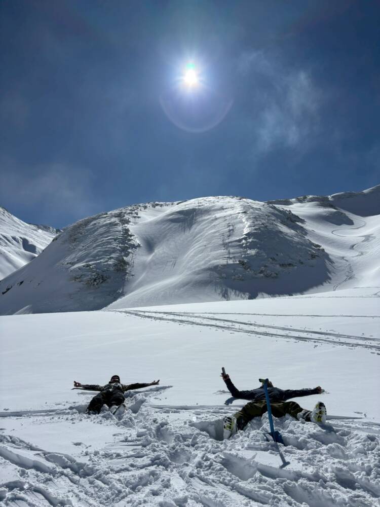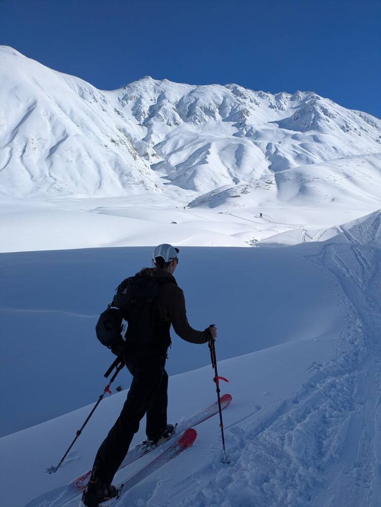 カールの中で楽しい地形を探しながら滑走していたら、あっという間に西日が沈んできました。