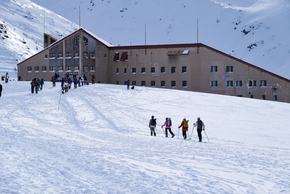 バスやらケーブルカーやらロープウェイやらを乗り継ぎ、1時間程度で扇沢から天上の楽園、標高2450mの室堂へ。バスターミナルを抜けると、大雪原。