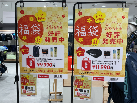 テニスコーナーでは1月1日よりHEADの福袋が発売中です。