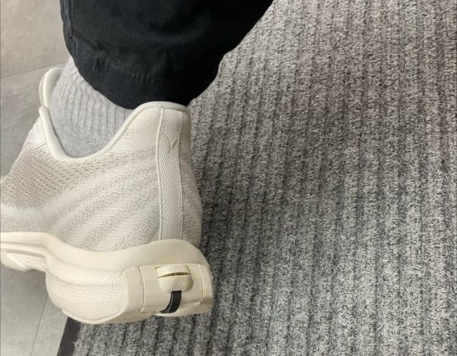 このシューズは何と、履くときも、脱ぐときも、手を使わずに、しかも腰も動かせずに、純粋に両足の動きだけで脱ぎ履きができます!